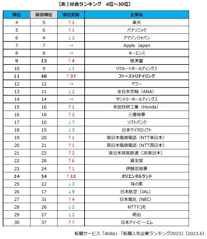 「転職人気企業ランキング2023」結果詳細:https://doda.jp/guide/popular/