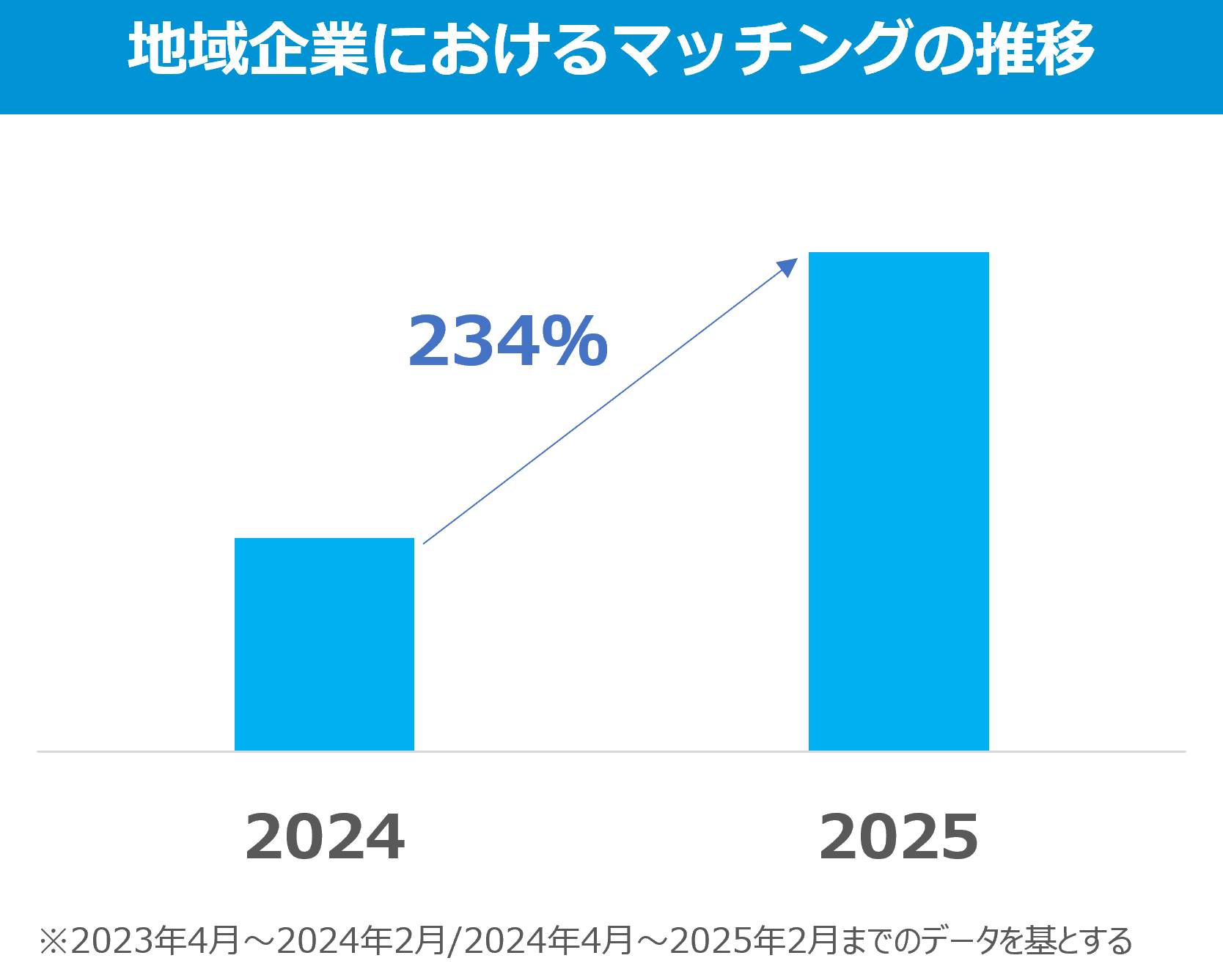政府の制度整備・企業の副業解禁も後押しとなり、「HiPro Direct」での地方企業におけるマッチング数(企業の募集案件に対して個人からの応募があり、成約した件数)は、前年比234.5%と大きく伸長しました。※