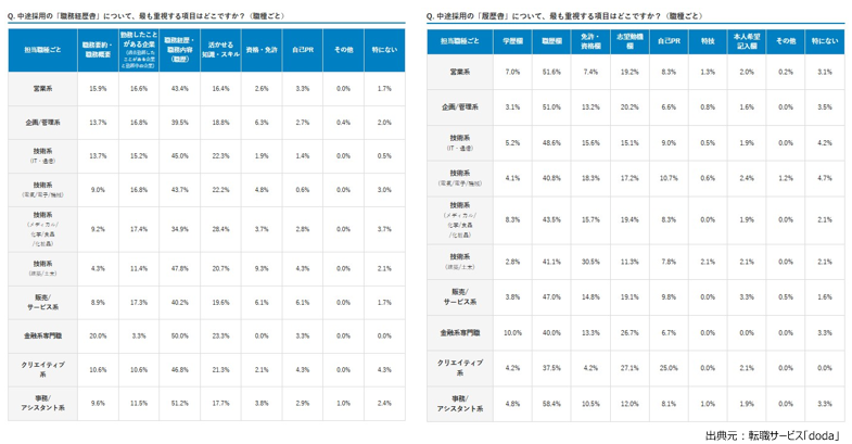 職種別でみても、職歴が重視されている傾向は変わりませんでした。