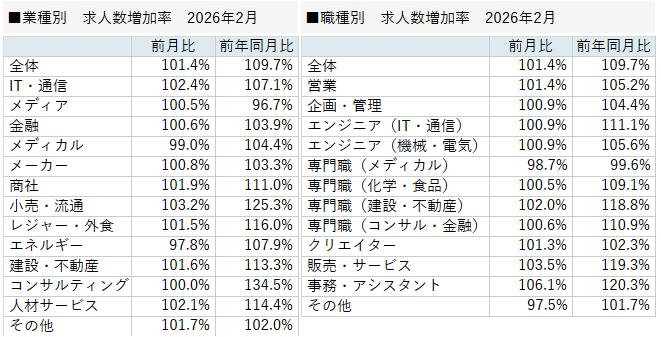 【転職求人倍率(業種別・職種別)】