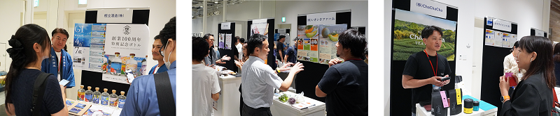 副業希望者と企業担当者が自由に交流できる出展ブースでは、企業が副業希望者に事業内容などをさらに詳しく案内。また、実際の商品を手に取れたり、試飲・試食を行ったブースもありました。副業希望者からは企業にプロジェクトや抱えている課題感について質問したり、具体的な提案をしたりする様子もうかがえました。