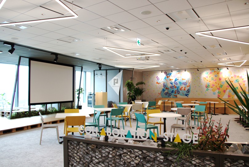 今回拡大した22階フロアでは、「越境し、協働する」をテーマに、社員同士のつながりや共創が生まれやすい空間を拡充しています。