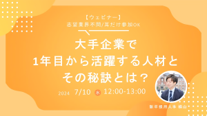 【募集終了】7月10日(水)開催「【志望業界不問/耳だけ参加OK】大手企業で1年目から活躍する人材とその秘訣とは?」【ウェビナー】